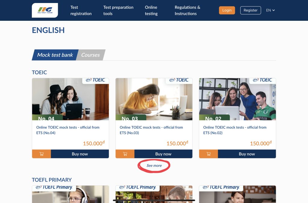 TOEICのSee more を押すと、Mock Test の一覧が表示されます。