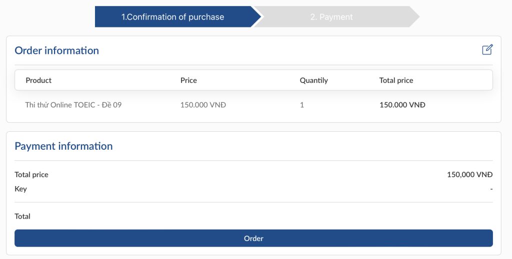 Buy nowを押すと、注文確認画面に移動します。そのまま購入を進める場合はorderをクリックして進んでください。