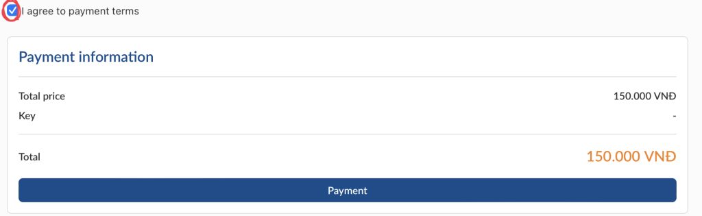 わたしのような規約なんて見ないよ。というせっかちの皆さんは、I agree にチェックを入れて、paymentボタンを押して進みましょう!(笑)