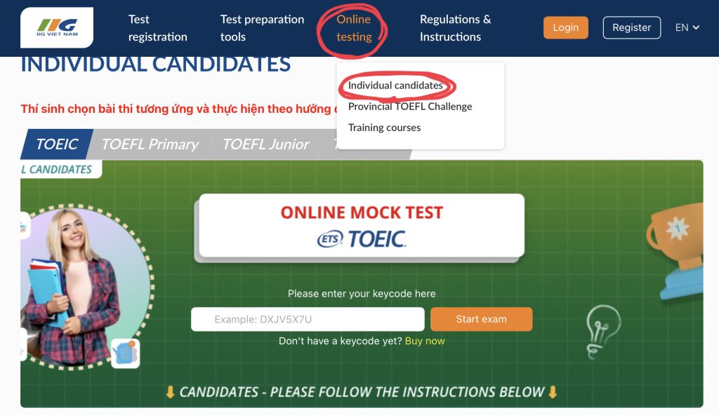 このMock Testは、ベトナムの携帯番号を持っている方でしたら、どなたでも受験可能です。